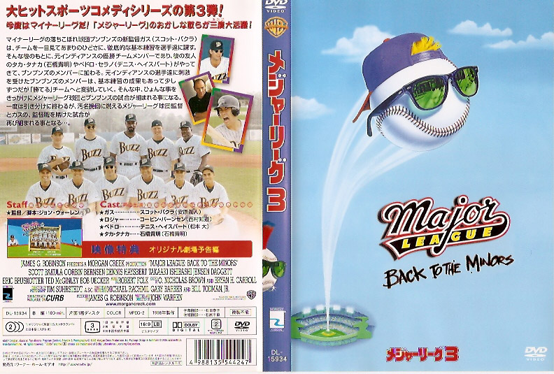 メジャーリーグ3、メジャーリーグシリーズの第3弾ですが、舞台はメジャーリーグではなくマイナーリーグのチームが舞台になっています。 この映画が劇場公開された年は1998年で、前作のメジャーリーグ2からは4年後の公開です。 今回もとんねるずの石橋貴明がタカ・タナカという役で出演しています。 この映画は今までのメジャーリーグやメジャーリーグ2とは少し違った視点で観賞すれば普通に楽しめる作品だと思います。 第一作のメジャーリーグ、そして第二作のメジャーリーグ2のような派手さのある映画ではありませんが、何となく地味に楽しめる映画ではあると思います。 まあ、あまり人にオススメ出来るほどの映画では無いかも知れませんがメジャーリーグシリーズのファンの方なら観ておいても損は無い映画だとは思います。 |